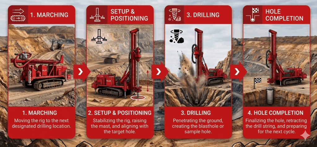 These methods form the operational backbone of drilling systems used in surface and underground mining environments.